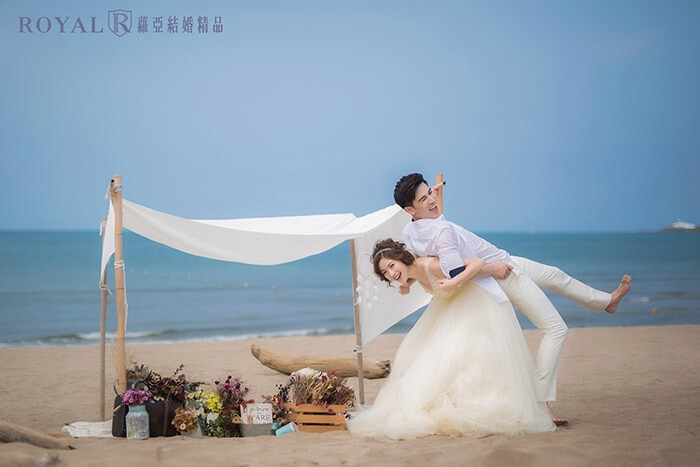 越來越多拍婚紗的新人都會提到想要拍自然感的婚紗照,尤其是近年來熱搜的『輕婚紗』更是令人著迷的流行趨勢。有別於歐式婚紗照強調古典優雅,美式的輕婚紗照則更崇尚自然而不拘泥,用真實的視角拍攝兩人最真誠的互動,像旅行遊玩的過程記錄著美好回憶。經典的輕婚紗照風格就像圖中的新人,一件白色的輕婚紗洋裝,在海邊以輕鬆、自然、生活感呈現拍出兩人真實的愛情。
