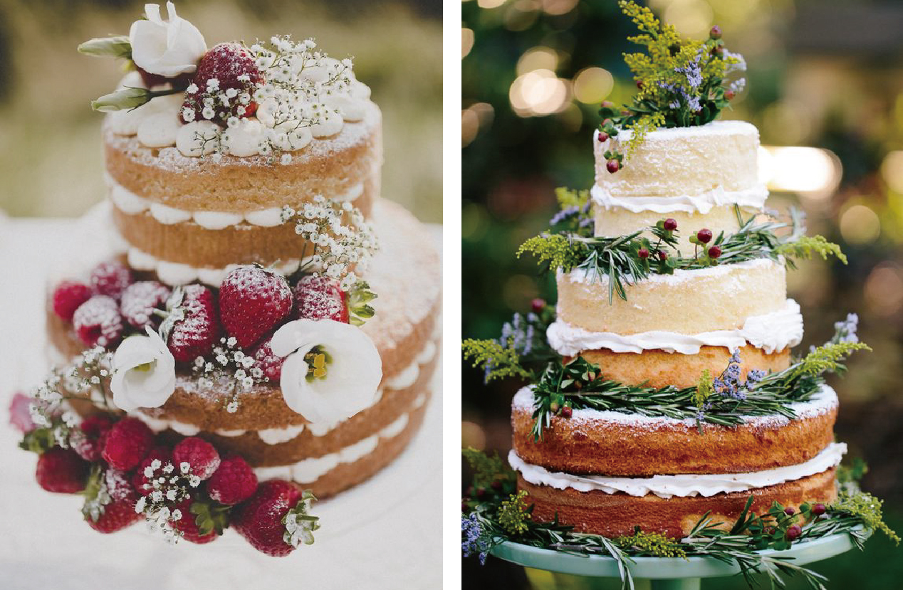 。裸蛋糕:少少的鮮奶油,大量的花草莓果裝飾,最近由歐美開始流行起來,帶一點粗曠一點浪漫,戶外婚禮的重頭戲。