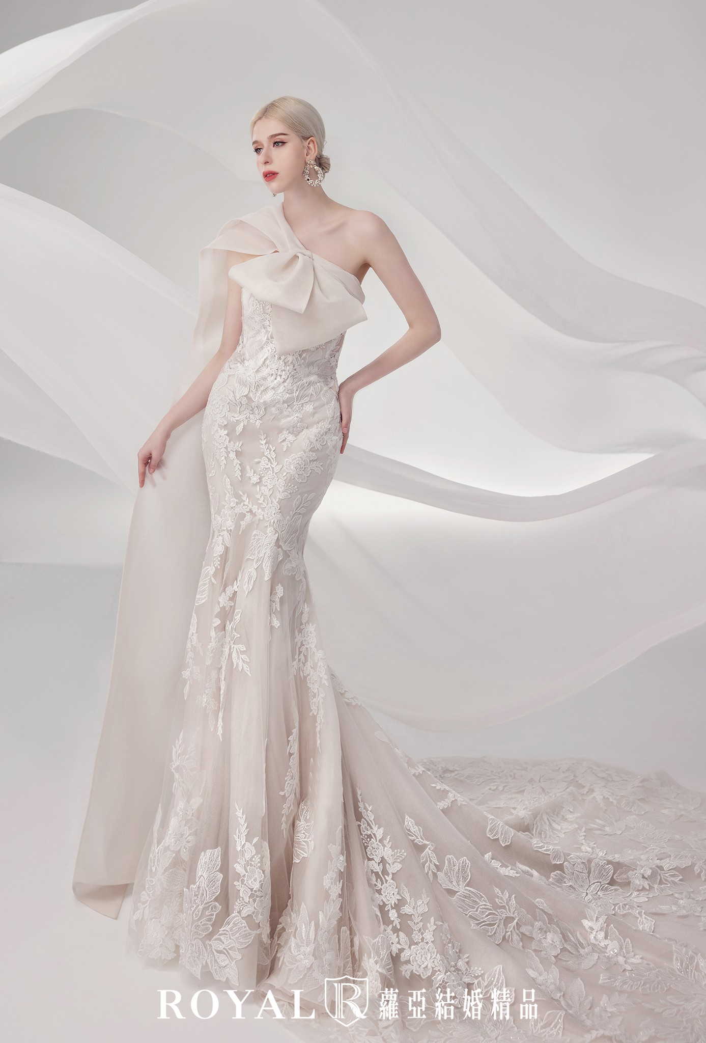 蘿亞魚尾婚紗系列以順胸貼腰的設計展現性感與女人味 並特別依東方女性的身型比例細緻調整 打造多款兼具修飾線條與設計感的魚尾婚紗禮服