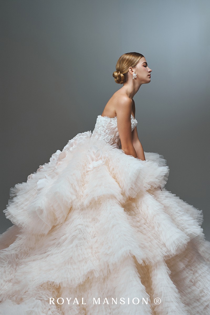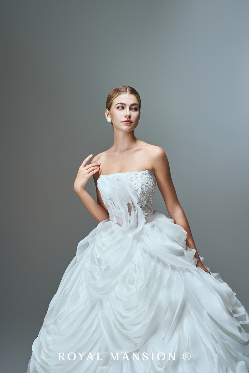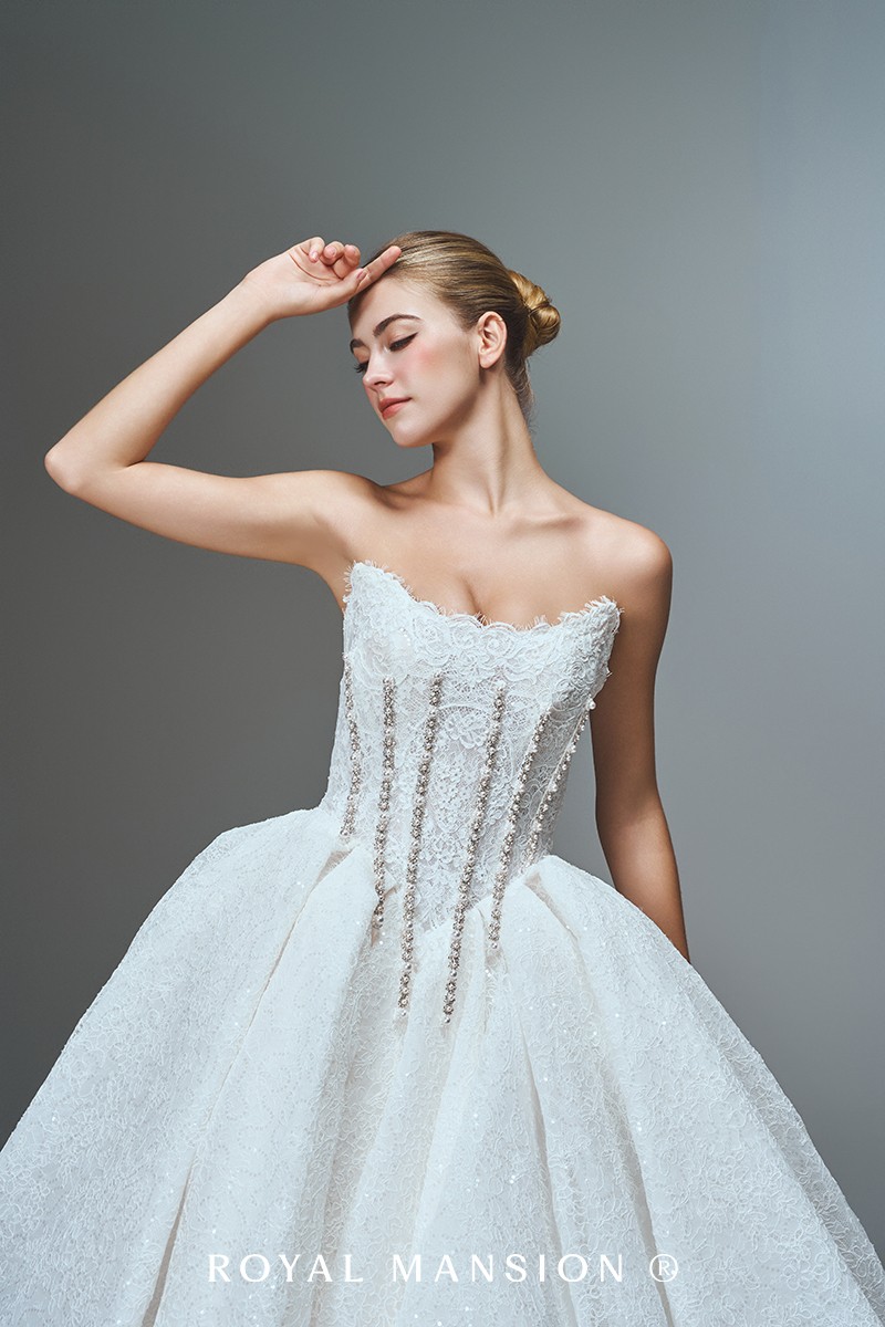 經典不敗公主款,能滿足各種不同身型條件,很好駕馭的蓬裙款式,非常適合下半身豐滿,稍微有點小腹的新娘。如果妳是身材嬌小的女生,也可以考慮選擇高腰或有腰帶設計蓬裙款式,不僅有顯高效果,也能穿出公主氣勢。